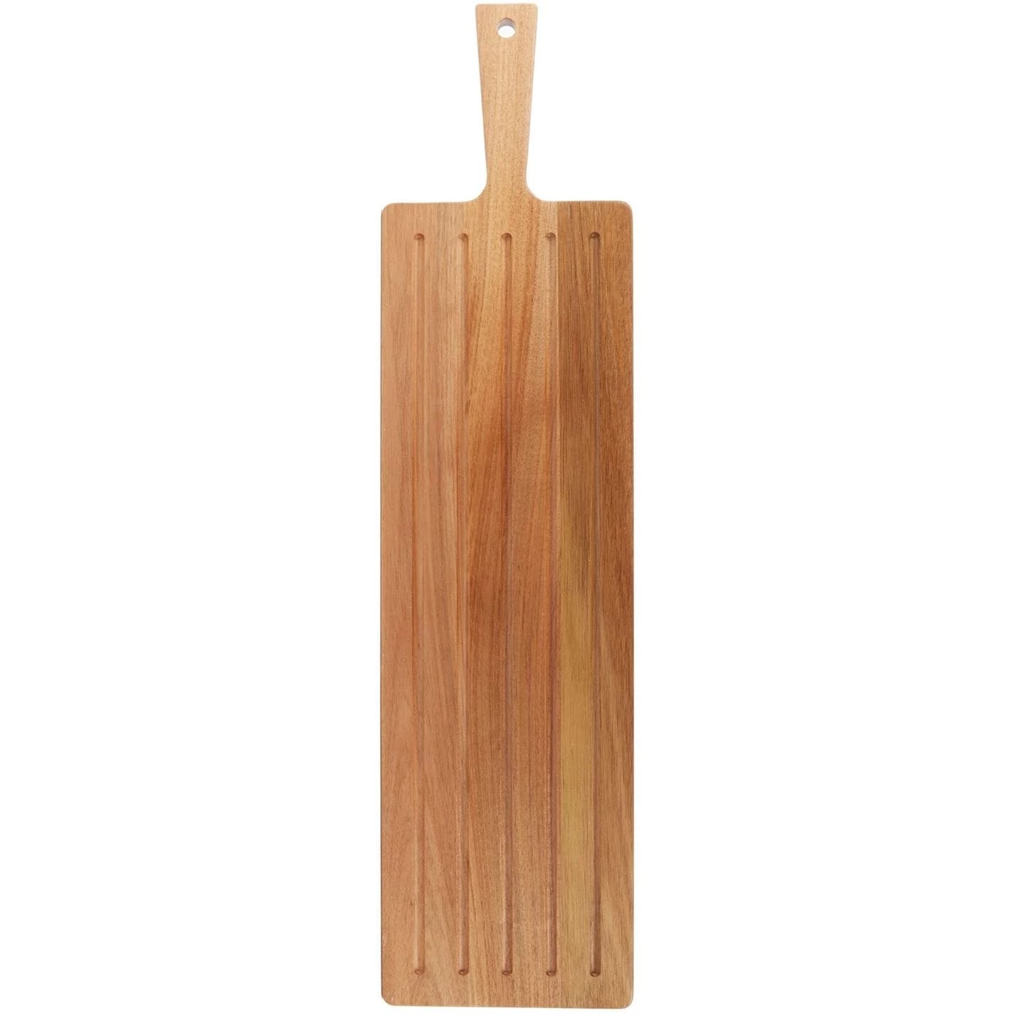 Serve up snacks, light lunches or antipasti on this long platter board by Linea. Created from acacia resilient wood for a durable yet stylish piece, it is adorned with a long handle for an ergonomic design. Finished with a hanging loop on the handle, it will add an elegant touch to your kitchen.