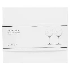 The set of 2 Linea Angelina crystal gin glasses. Completed with drawn stems, generous bowls and sparkling clarity, these glamorous glasses are stylish and perfect for a special occasion. Each unique glass in the Angelina range is hand cut and hand polished, complemented by the brilliance of the crystallized Swarovski elements.