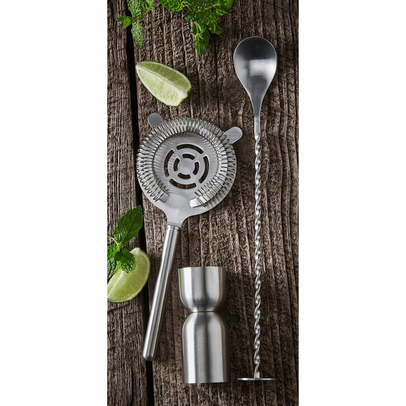 Our carefully selected barware collection ensures you have everything you need entertain in style. The Cocktail Collection 3 piece tool gift set includes one stainless steel stirring spoon, one stainless steel strainer and a measure.