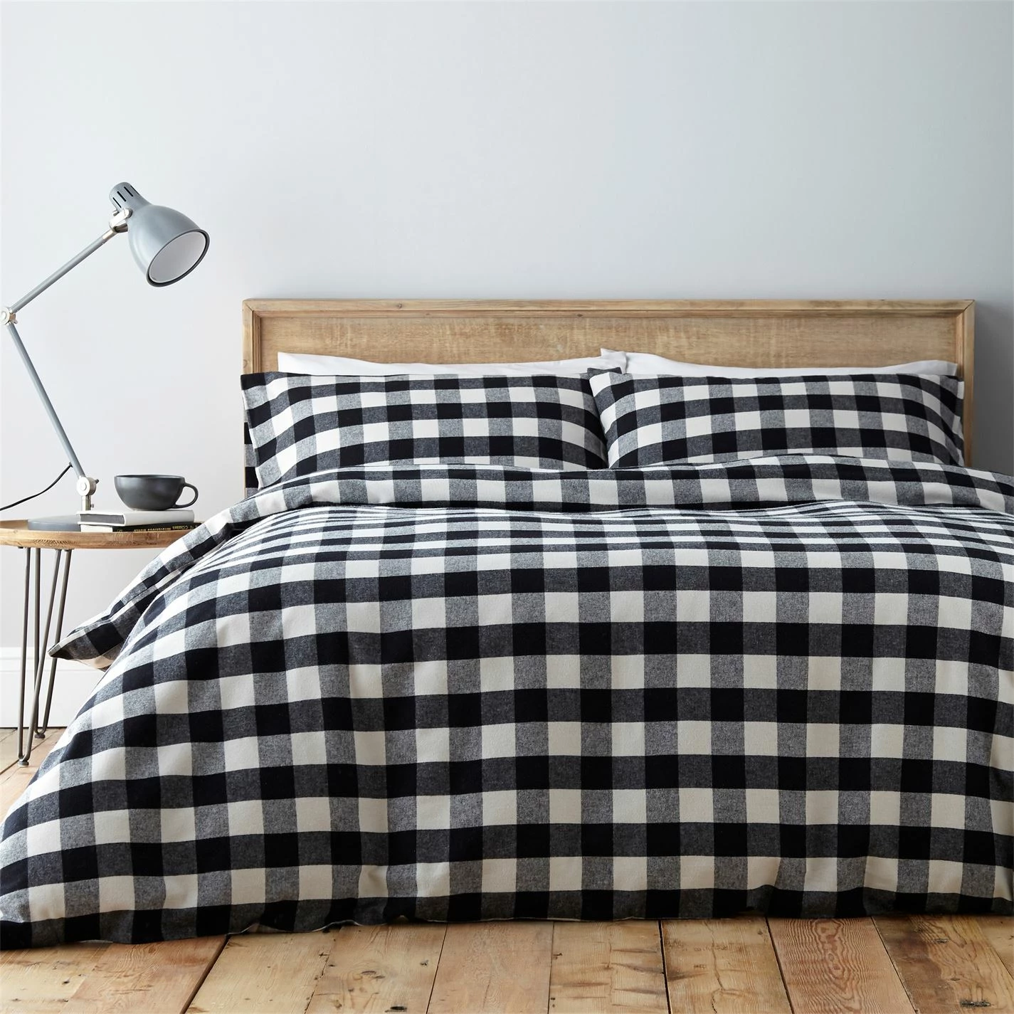 Elegant and graphic woven check that combines the softness of brushed cotton to the simplicity of a monochrome colour way. Included 2 standard pillowcases.