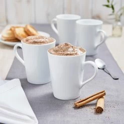 Dishwasher and microwave safe. This boxed set include 4 mugs.
